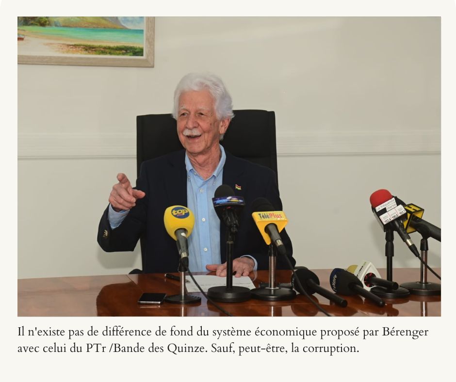 Rs 47 milliards, il critique une procédure administrative plutôt qu’une politique. Il veut améliorer la gestion d’un système et non pas le changer. Ces Rs 47 milliards sont destinés en majeure partie à des projets immobiliers, un investissement non productif pour le pays. Bérenger ne remet pas en cause le modèle de développement économique qui fournit des villas de luxe aux riches étrangers grâce à des concessions fiscales sous les plans IRS/PDS/HIS accordées aux promoteurs. Il ne remet pas en question non plus les facilités diverses accordées aux promoteurs des « smart cities » au détriment de l’environnement et du patrimoine agricole.